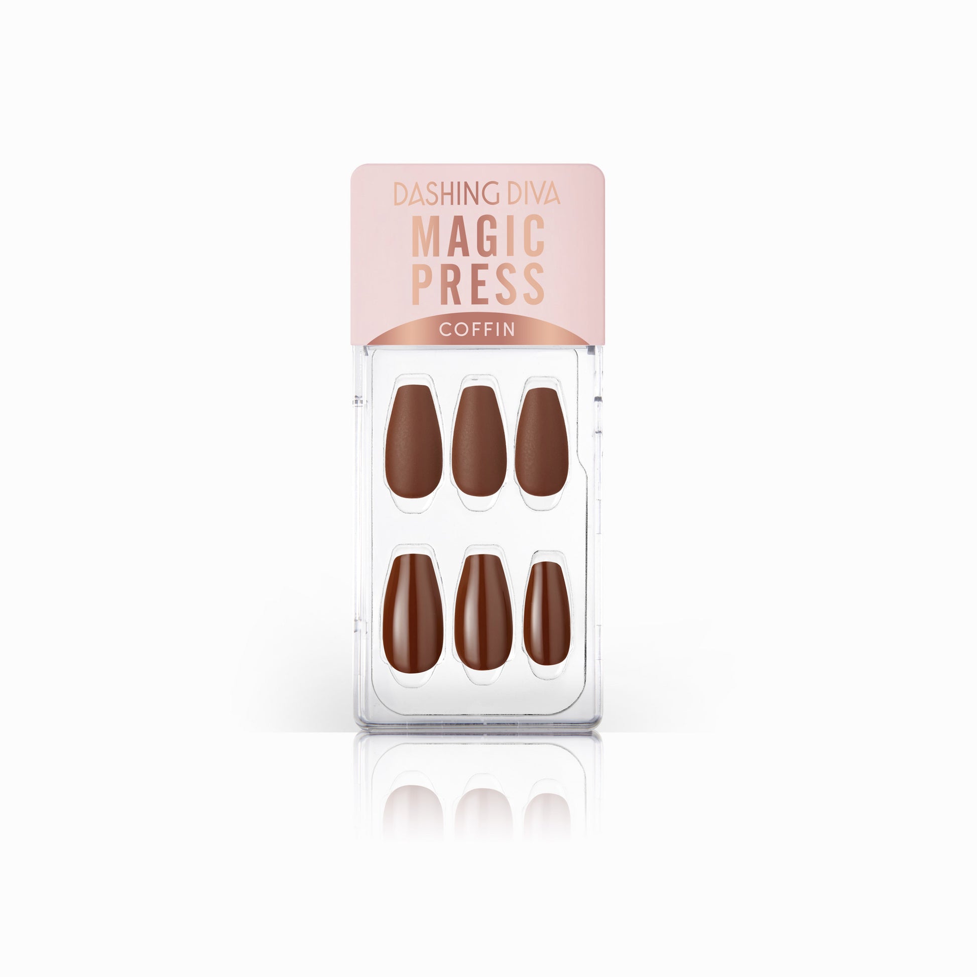 The deep chocolate colour creates a matte texture like cashmere knit and a neat glossy texture to complete a trendy coffin nail.