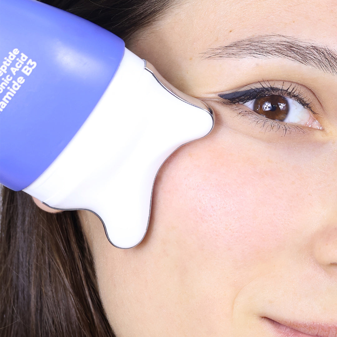 The special 3-dimensional gua sha head design allows the rich ingredients to deeply penetrate your skin.