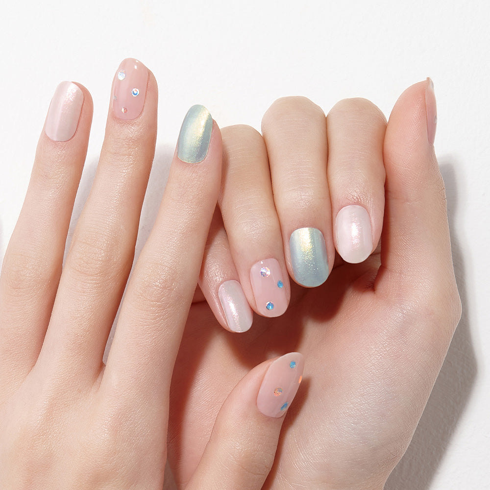 The brilliant silver pearl powder added a bling effect to the mysterious blue-colored nails.