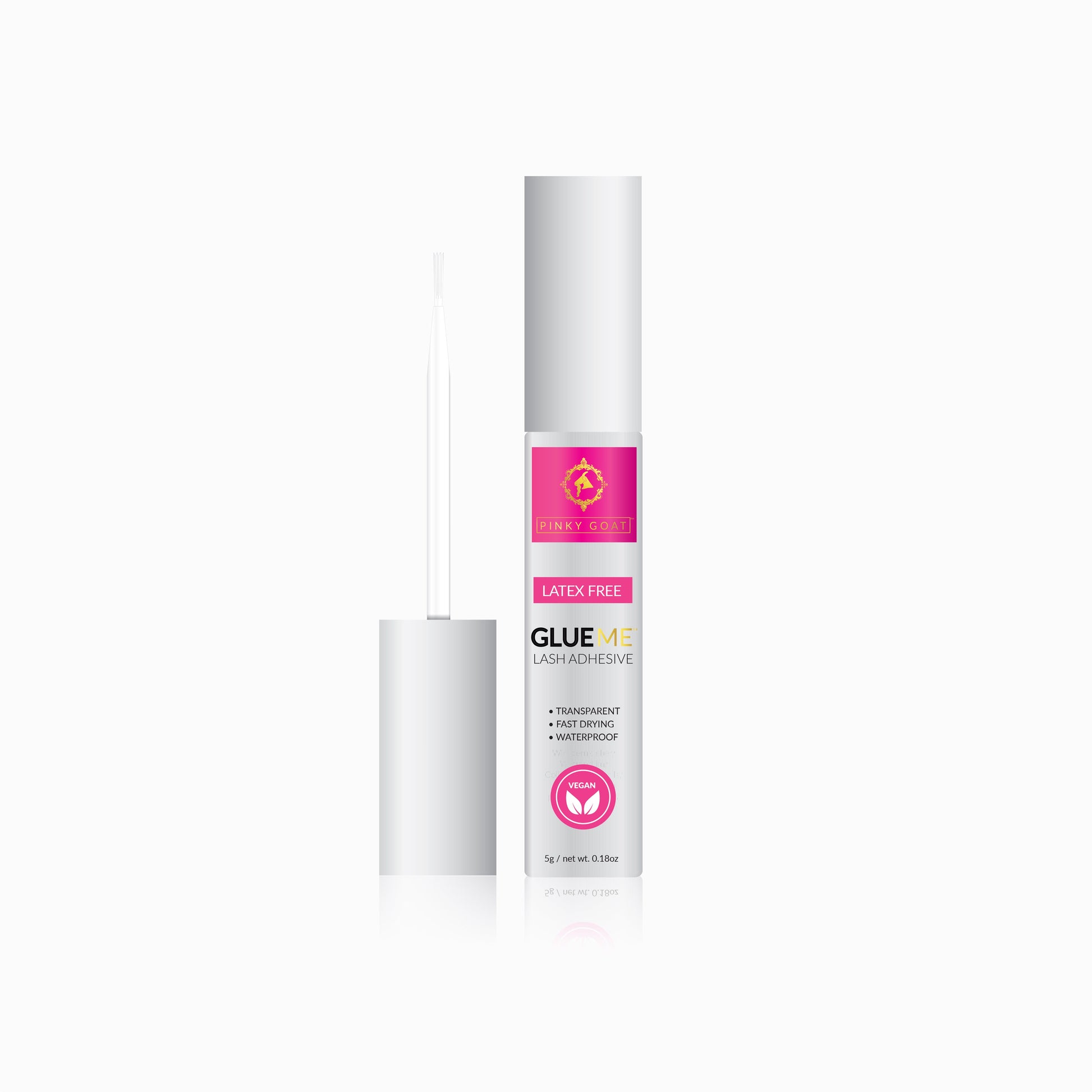 Designed exclusively by Pinky Goat, this fast-drying gentle formula goes on white and dries transparent for a totally natural look, and has an easy-to-use brush applicator.